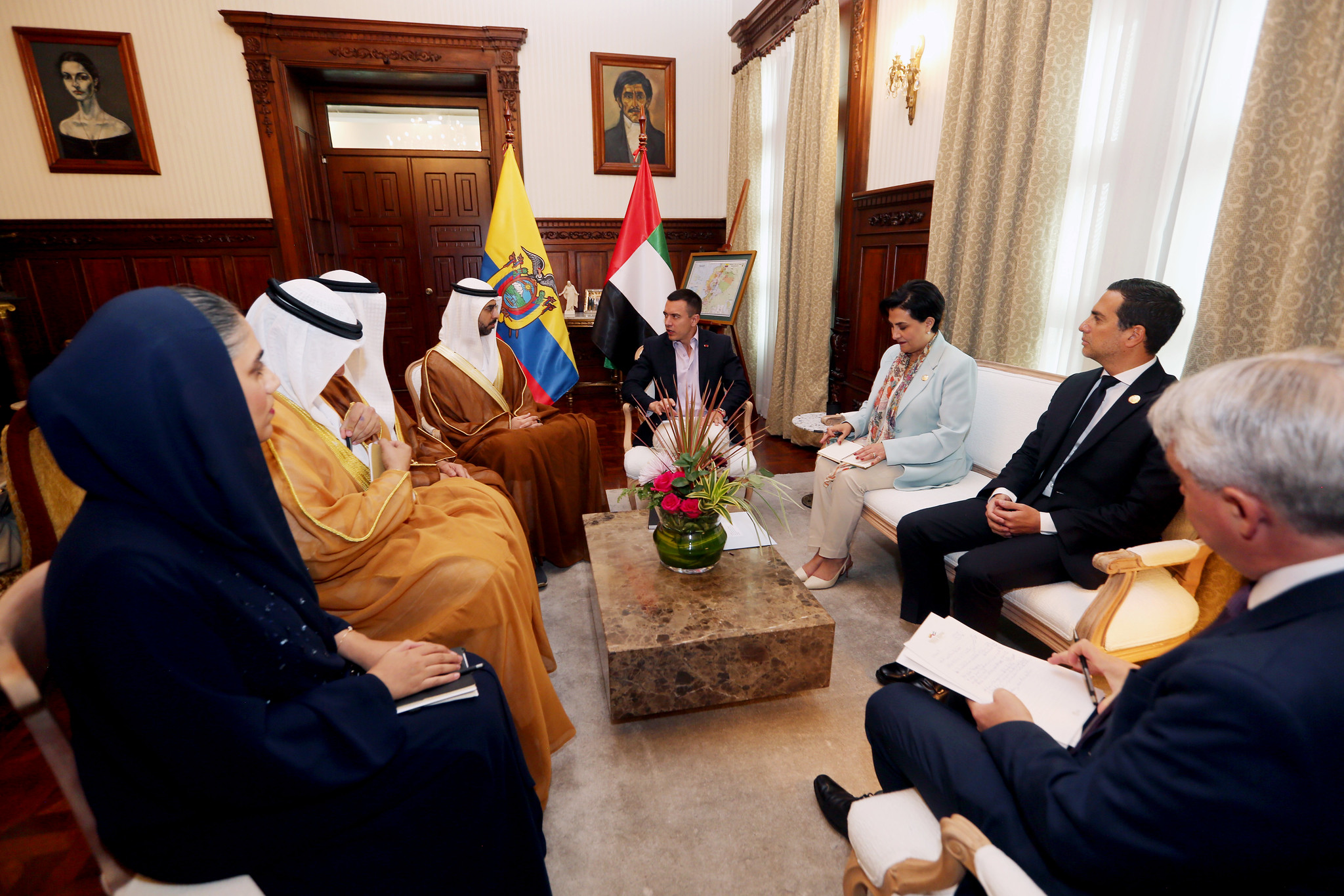 Quito fue sede este 21 de junio del Primer Foro Económico y de Inversiones Ecuador–Emiratos Árabes Unidos, un encuentro de alto nivel que refuerza la política exterior del Gobierno ecuatoriano enfocada en la cooperación para el desarrollo. La delegación emiratí, encabezada por su Excelencia Omar Sultán Al Olama, ministro de Estado para Inteligencia Artificial, Economía Digital y Aplicaciones de Teletrabajo, fue recibida por el presidente Daniel Noboa en Carondelet, donde se reafirmó el compromiso bilateral.