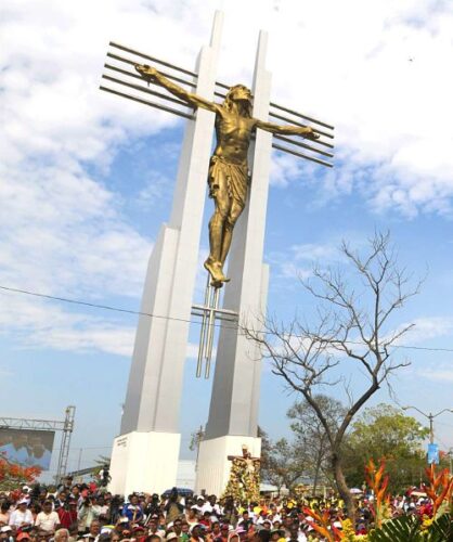 37 metros mide el monumento en total, solo la figura tiene una extensión de 15 metros de alto por 15 metros de ancho.