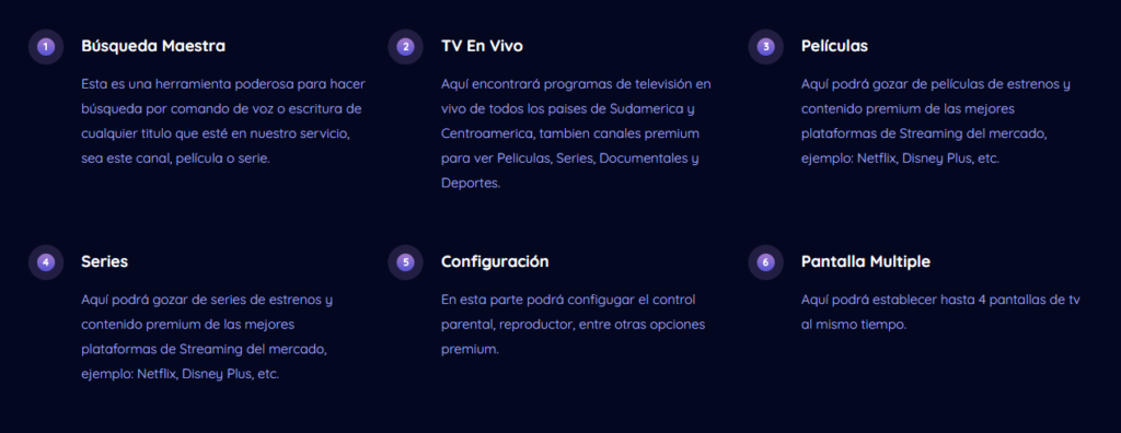 Cada cuenta tiene la opción de poder verse hasta en tres dispositivos; además contamos con nuestro propio WebTv Player para que lo pueda ver desde un PC o Tv Inteligente.